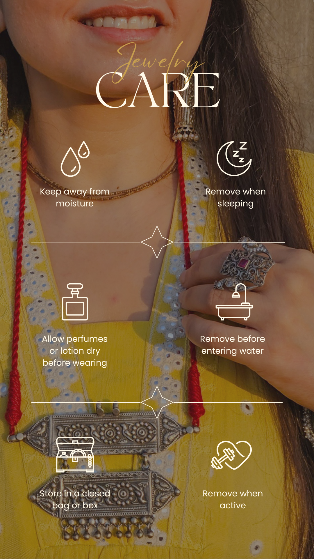 1. Keep away from Water, remove the jewellery before bathing or swimming.